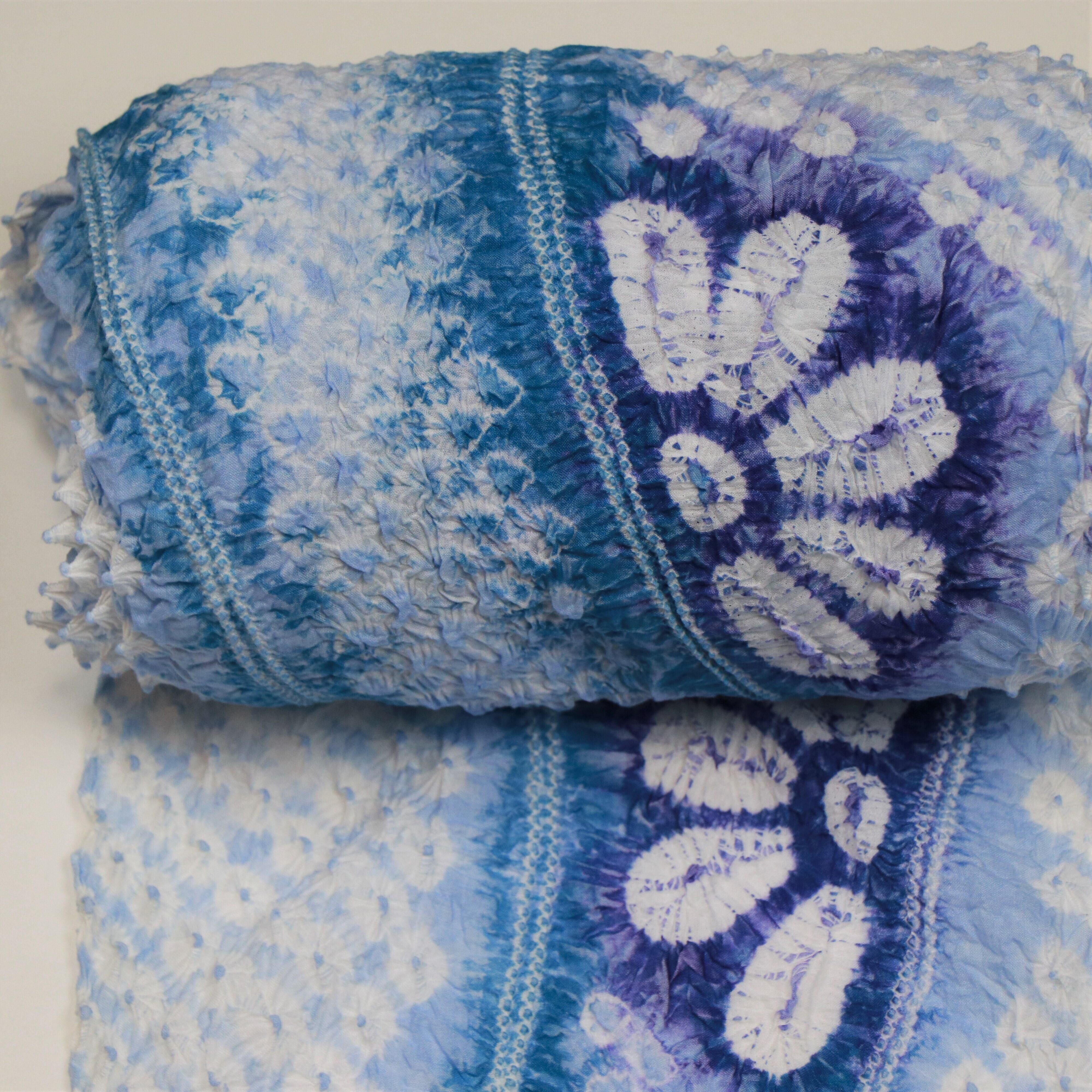 東海道・有松は400年の歴史を持つ絞りの産地です。 このゆかた地は、一粒一粒に丹精を込めてくくられ、自然な風合いを大切に手染めを繰り返し、一年余りをかけ丁寧に仕上げました。 手作りの持つ優しさと、伝統が誇る格式の高さがもごとに調和した逸品です。 生地・染色 日本製 綿 100% 長さ 約12.3m 巾 約37.8cm